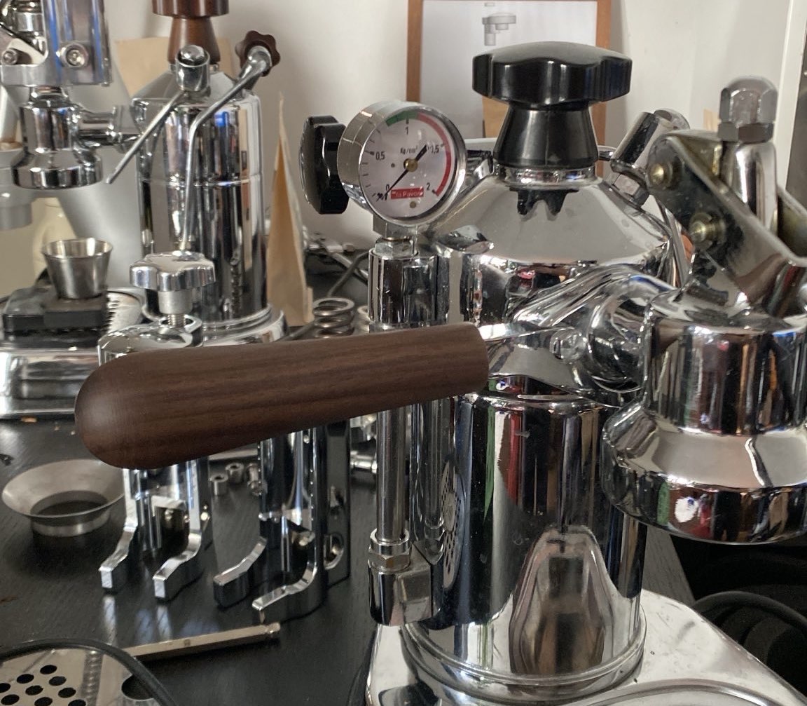 Die Hebel-Verlängerung ermöglicht einfachere Bezüge mit der 9bar Feder und auch eine entspanntere längere Preinfusion.
