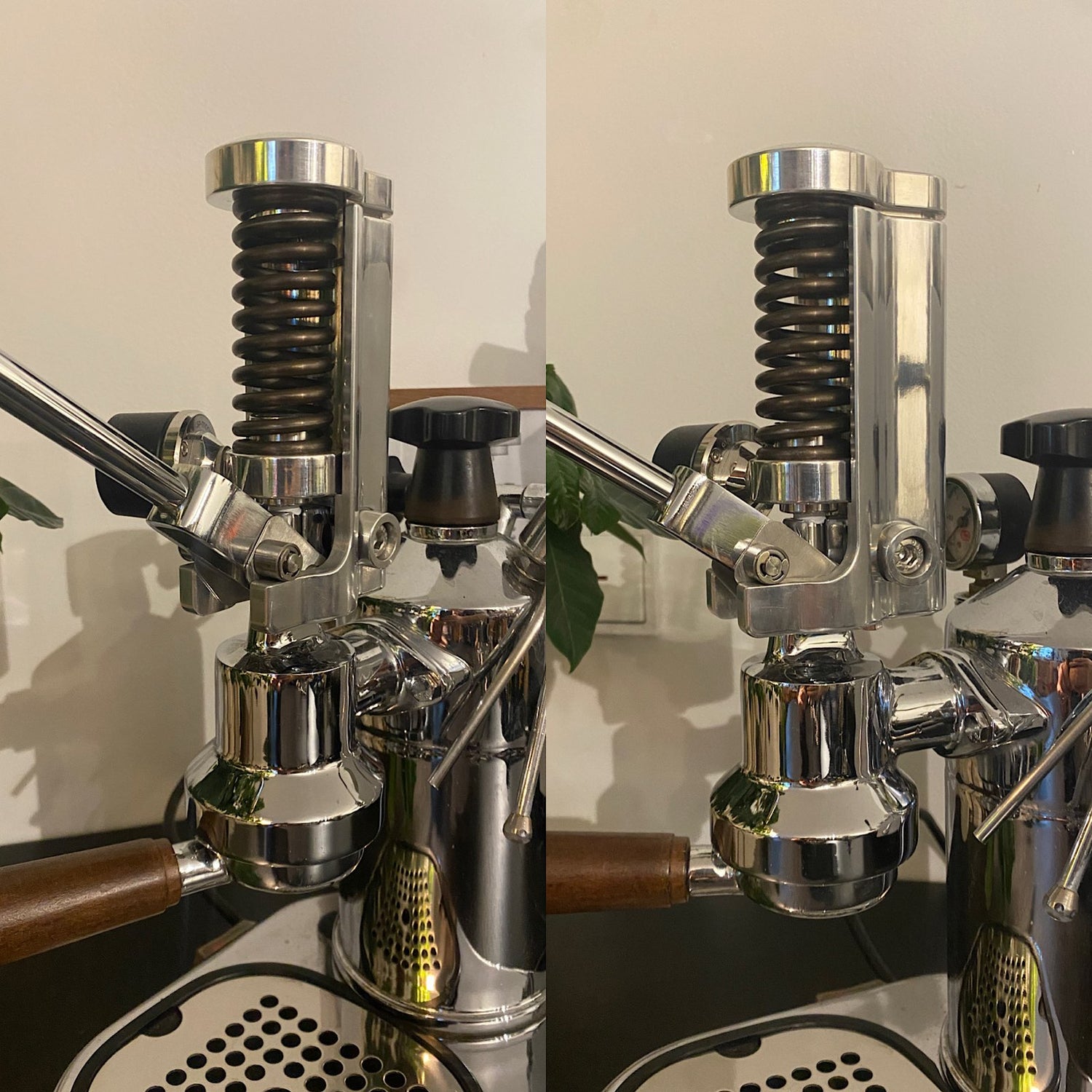 Also die Sache ist dass man nicht immer einen Gastrohebler zuhause für einen einzigen Espresso anmachen kann, also kann man schon... aber manch einer rollt dann mit den Augen... Also haben wir darüber nachgedacht ob man die Pavoni nicht in einen Federhebler verwandeln kann - und wie sich herausstellte kann man das - und es macht auch jede Menge Spass. Auch für total Anfänger ist es deutlich einfacher einen Bezug mit der 6bar Feder zu meistern als im klassischen direkten Hebelbetrieb. Man kann sich mehr auf den Mahlgrad, den Fluss und das Ergebnis in der Tasse fokussieren wohlwissentlich dass man eine Konstante hat - das Druckprofil der Feder.